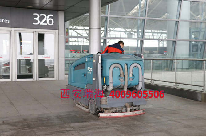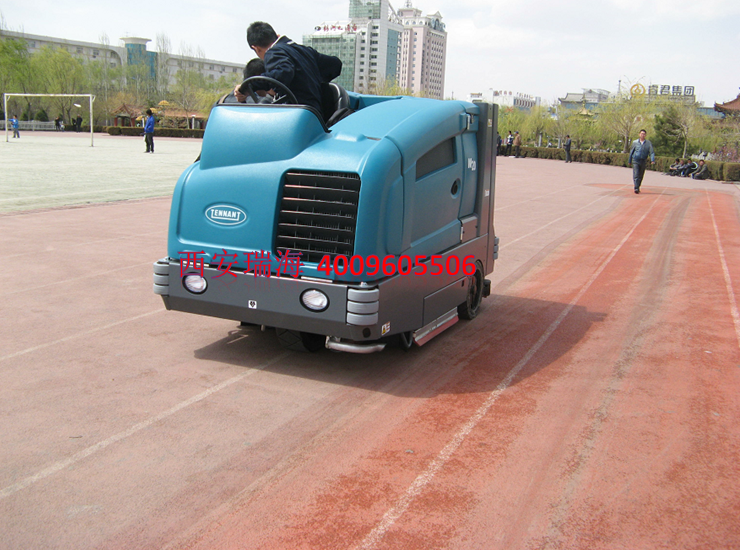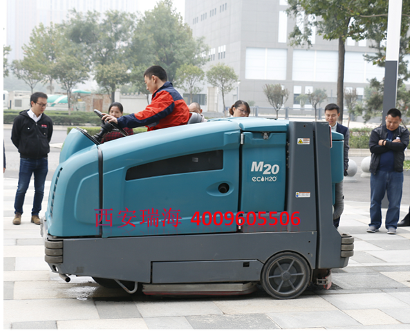 ●坦能 M20 駕駛式掃洗一體機只需一次通過,即可完成清潔,降低了使用成本