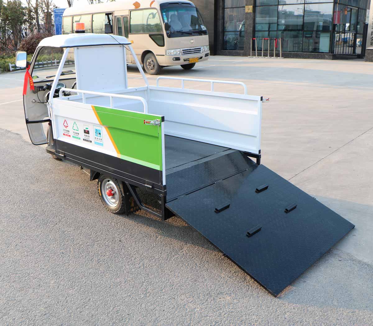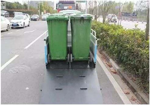 3、適用于短途駁運垃圾桶,可裝載4個240L標(biāo)準(zhǔn)垃圾桶;裝卸方便,集垃圾收集、存儲、清運于一體,有效提高作業(yè)效率;